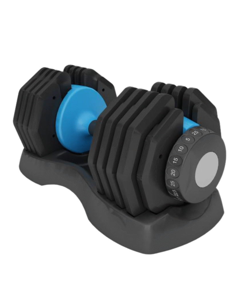 Já os dumbbells ajustáveis combinam praticidade e durabilidade, com sistemas de carga inteligentes e pegadas emborrachadas ergonômicas. São perfeitos para ambientes que valorizam versatilidade, segurança e aproveitamento inteligente do espaço.